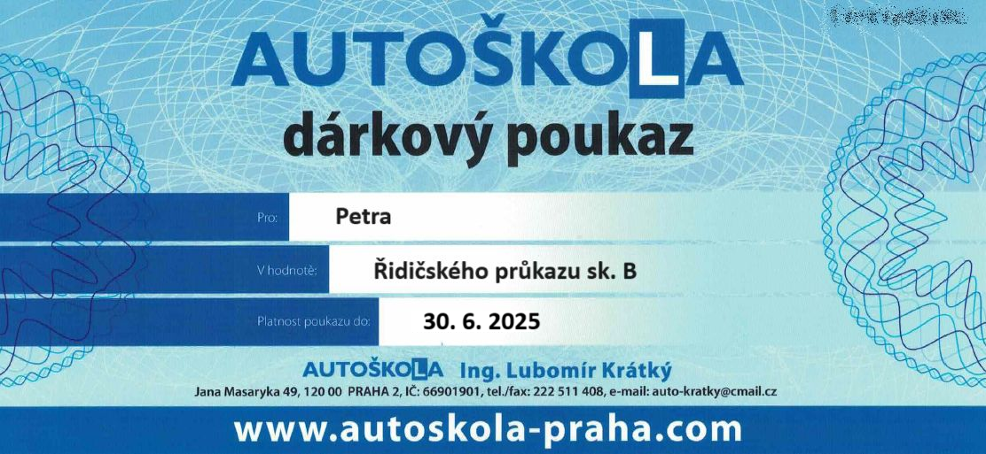 Vzor dárkového poukazu, který Vám rádi vystavíme na pobočce.
